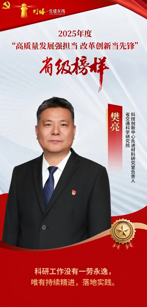 樊亮是长期扎根交通科研一线,从跨专业起步成长为具有多学科交叉创新能力的科研骨干。面对行业难题,他带领团队历时十年攻克沥青路面全再生技术,实现旧料利用率最高达100%,推动材料循环利用。他主持研发的“SBS改性沥青性能快速检测法”,将检测时间从3天缩短至30分钟,已应用于省内外多项重大工程。他在道路新材料、固废资源化等领域取得多项成果,并将绿色技术用于农村公路建设,相关工程与事迹被中央电视台及省级新闻媒体关注、报道。本人先后荣获山东省五一劳动奖章、“山东交通大工匠”等称号,带领团队获省部级奖项20余项,培养技术骨干20余名,用实际行动诠释了精益求精、甘于奉献的工匠精神。